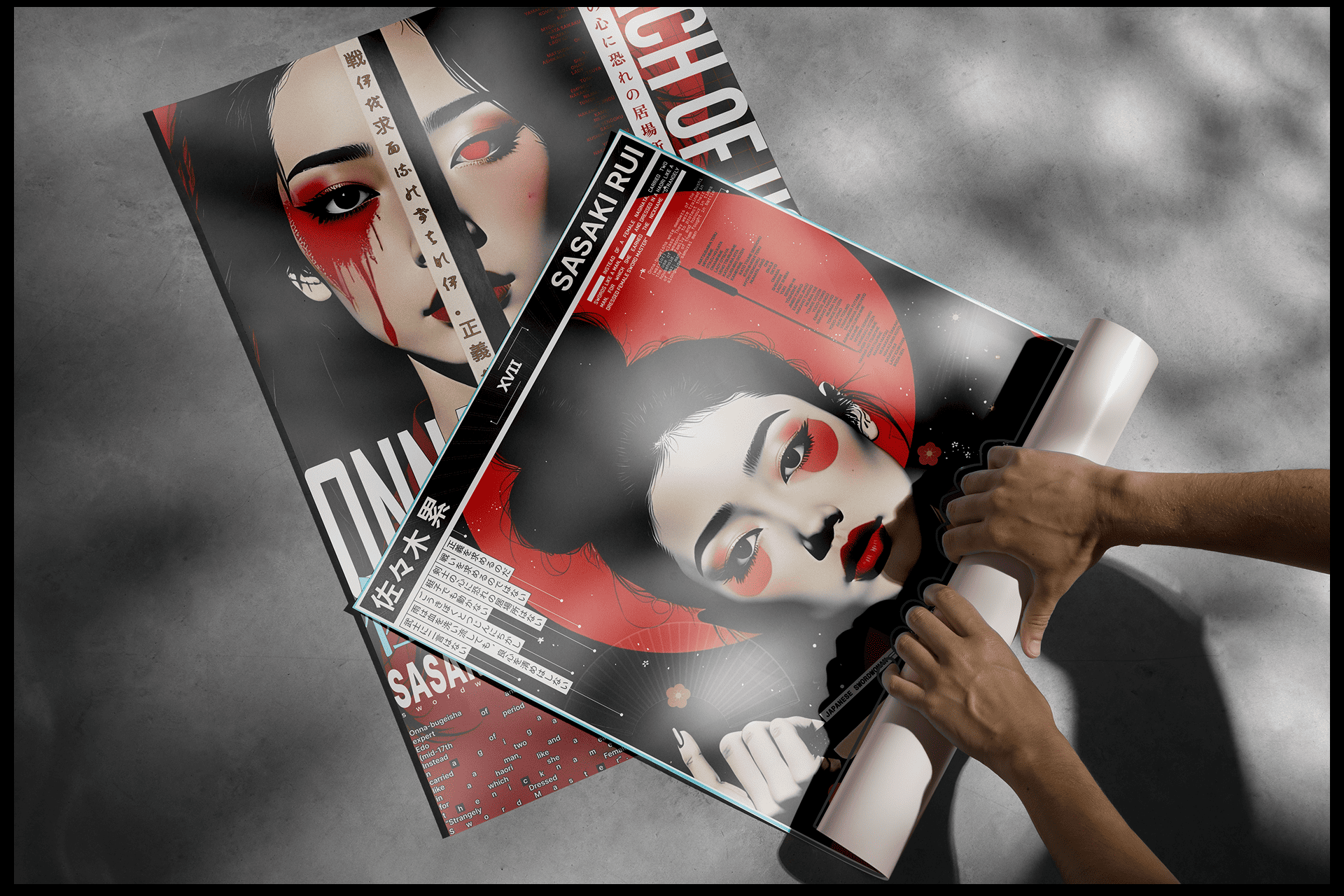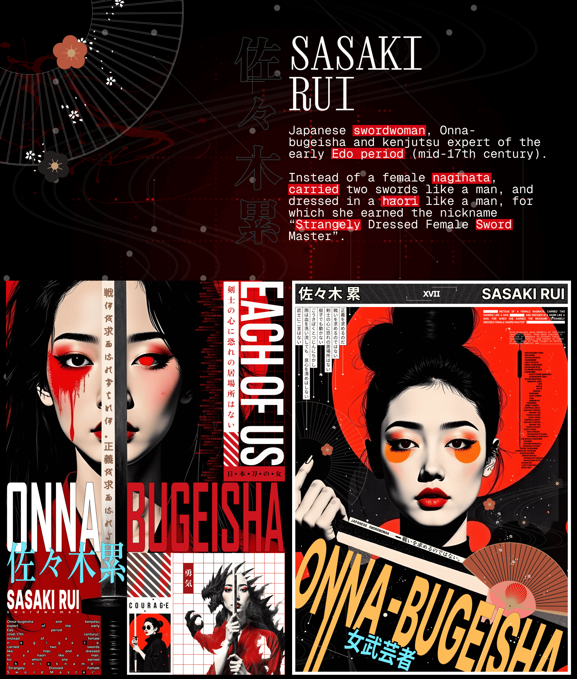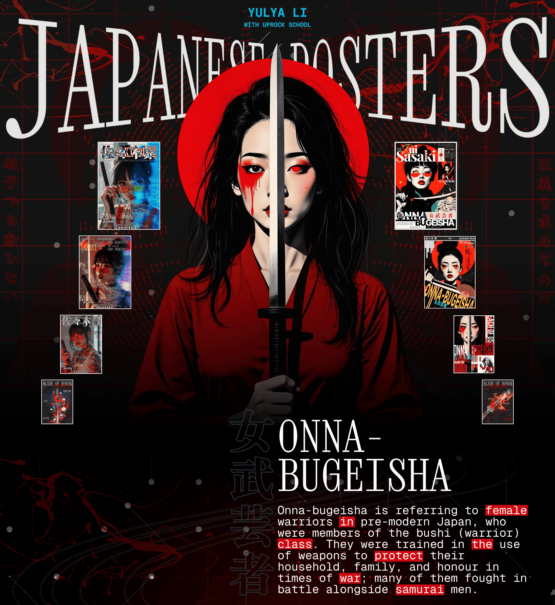 Серия японских постеров Onna-bugeisha. три постера из этого проекта были напечатаны в журнале для дизайнеров.