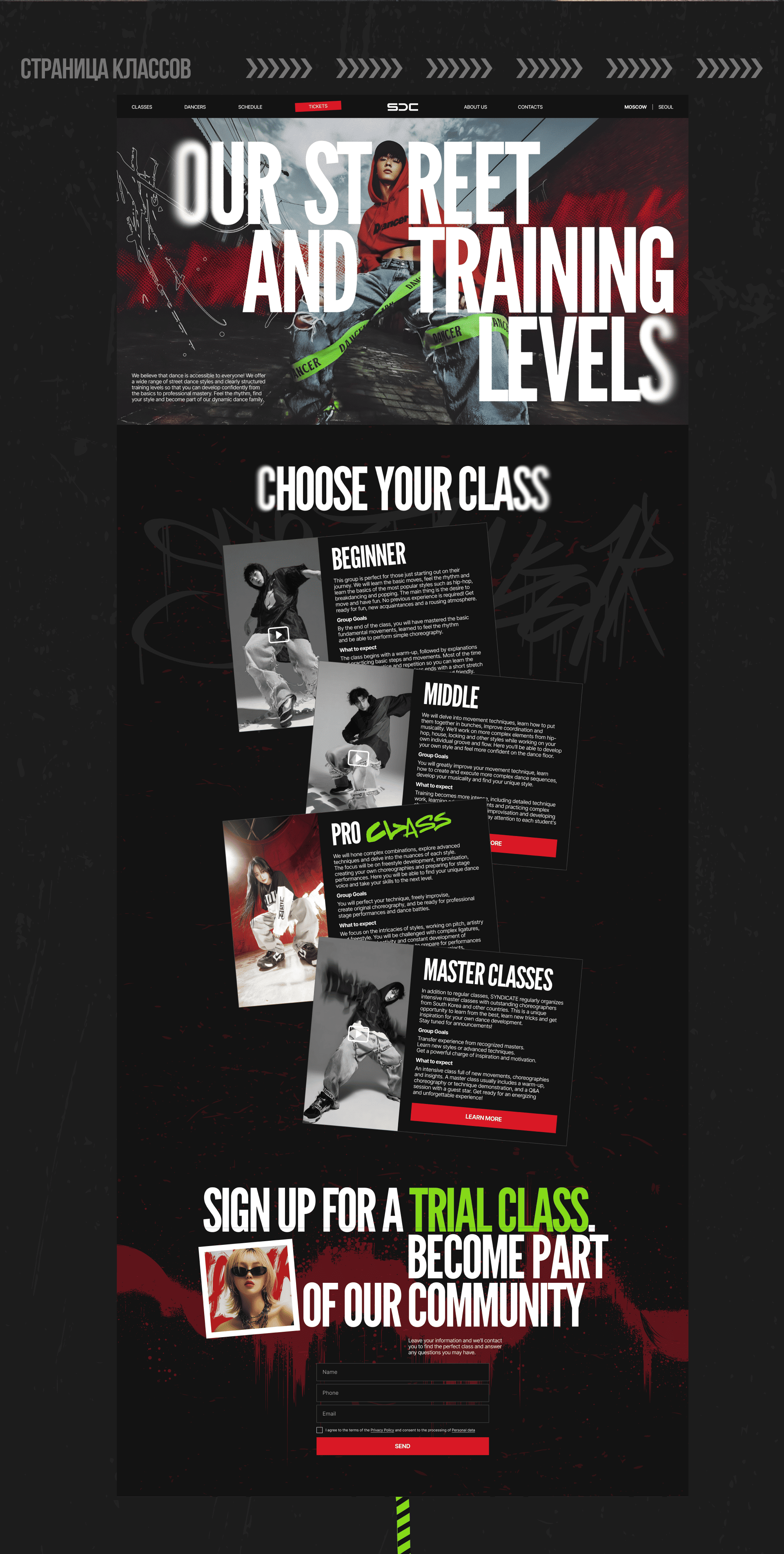 сайт для студии уличного танца.